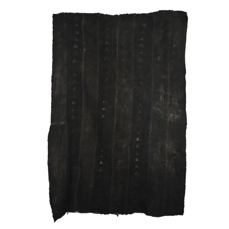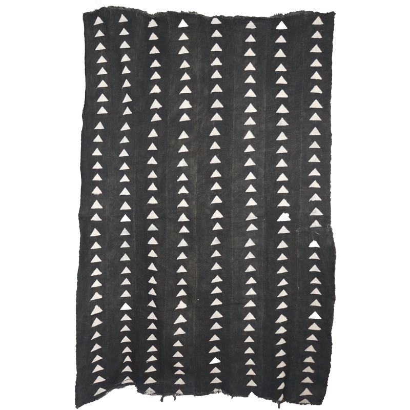Beau et grand bogolan du Mali en noir et triangles blancs. Qui symbolisent les pas du chameau. Bel artisanat africain tissé à la main en longues bandes. Puis cousues ensemble sur la longueur. Tissu africain traditionnel Bamana. Belle décoration africaine. Peut se poser sur un canapé, recouvrir un fauteuil ou fabriquer des housses de coussins, etc. 150 cm X 100 cm.