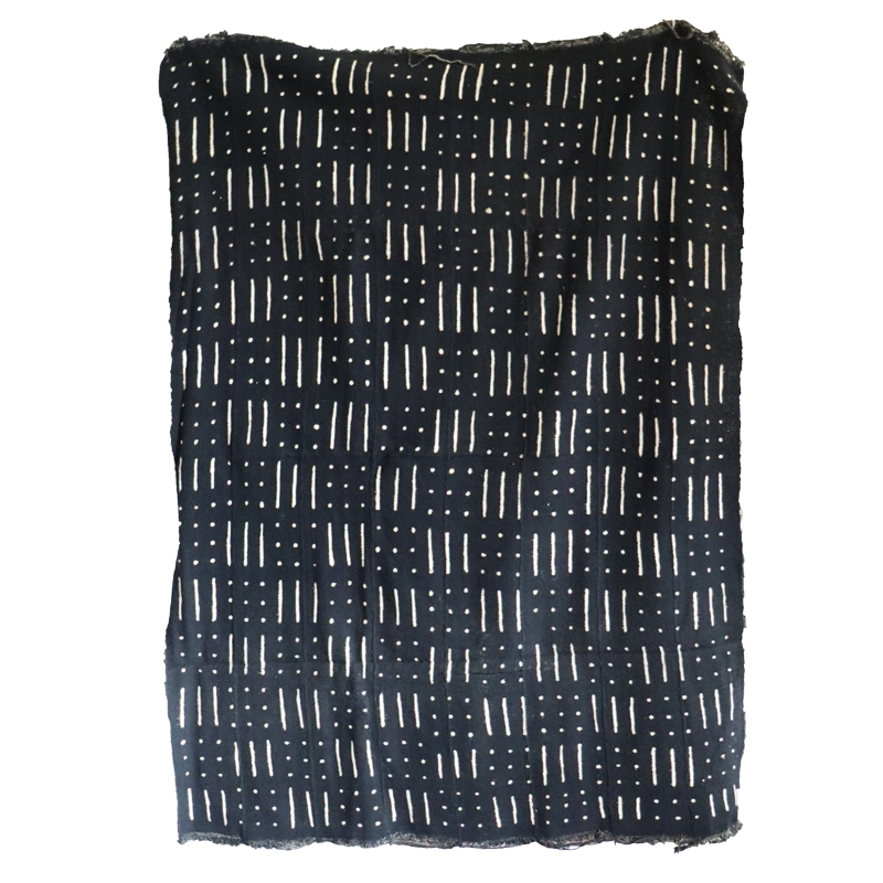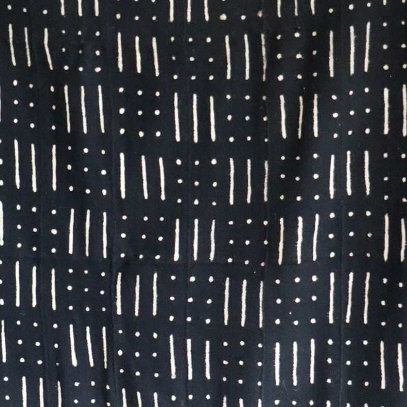 Tissu artisanal du Mali, Bogolan coton noir motifs blancs. Tissé à la main en longues bandes cousues ensemble sur la longueur. Tissu africain traditionnel Bamana. Décoration africaine d'intérieur. 107 cm X 150 cm env.
